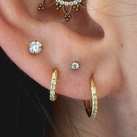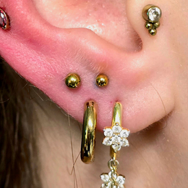 Se situe dans le lobe d'oreille. Il s'agit de deux perçages qui se rejoignent pour y placer un anneau.