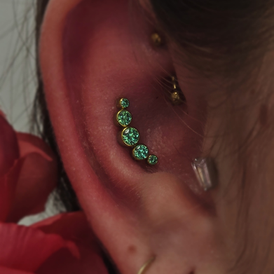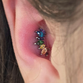 Se situe sur une zone épaisse cartilagineuse. Il s'agit d'un perçage en 2 points, l'un en conch, l'autre en anti-hélix.