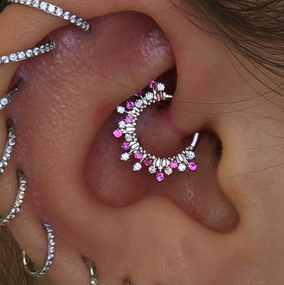 Il faudra choisir un bijou de taille et format adapté. L'angle de l'anneau est important : certains sont en façade (idéal pour le Daith) et d'autres sont en tranche (idéal pour un Hélix), il ne faut pas tout mélanger. ;)
